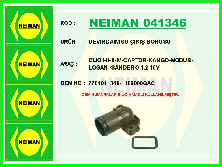 DEVİRDAİM SU ÇIKIŞ BORUSU CLIO I-II-III-IV-CAPTOR-KANGO-MODUS-LOGAN -SANDERO 1.2 16V