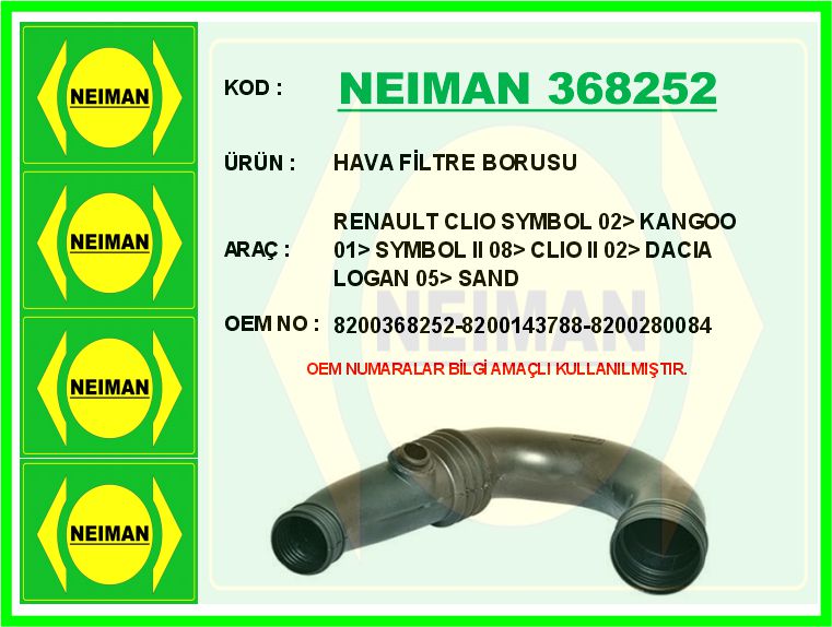HAVA FİLTRE BORUSU RENAULT CLIO SYMBOL 02 KANGOO 01 SYMBOL II 08 CLIO II 02 DACIA LOGAN 05 SAND