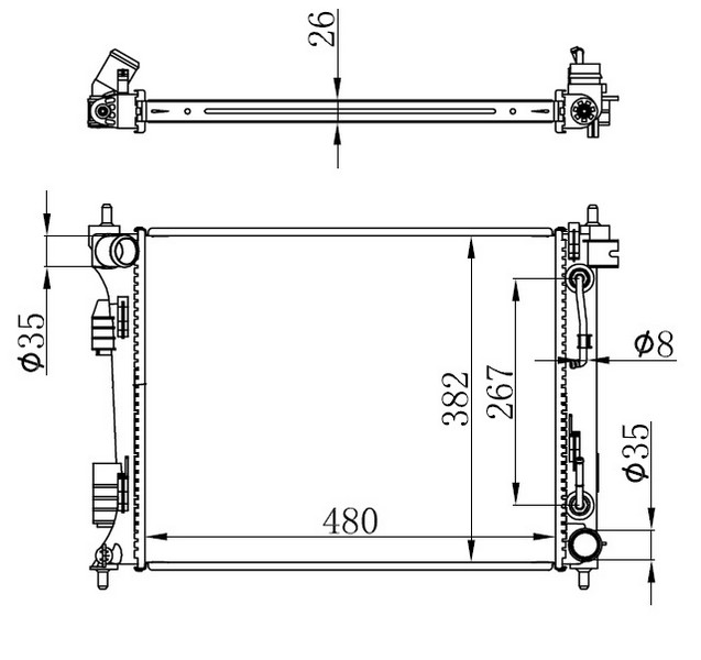 RADYATÖR BRAZİNG ACCENT BLUE 1.6 CRDİ -İ20-KIA RIO DİZEL 11 > OTOM. 480x382x26